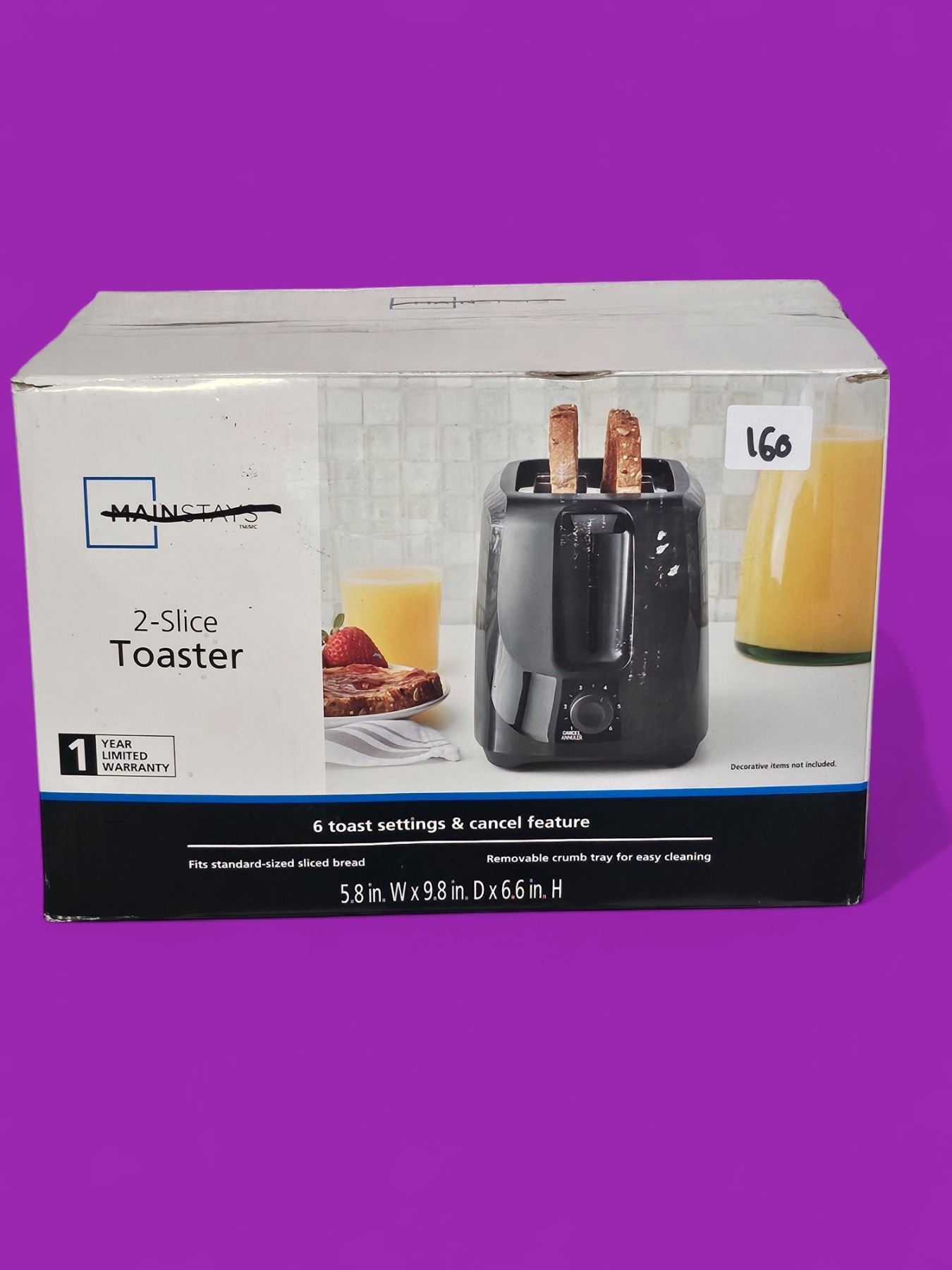 2 Slice Mainstays electric Toaster. Not for use as a bath bomb*