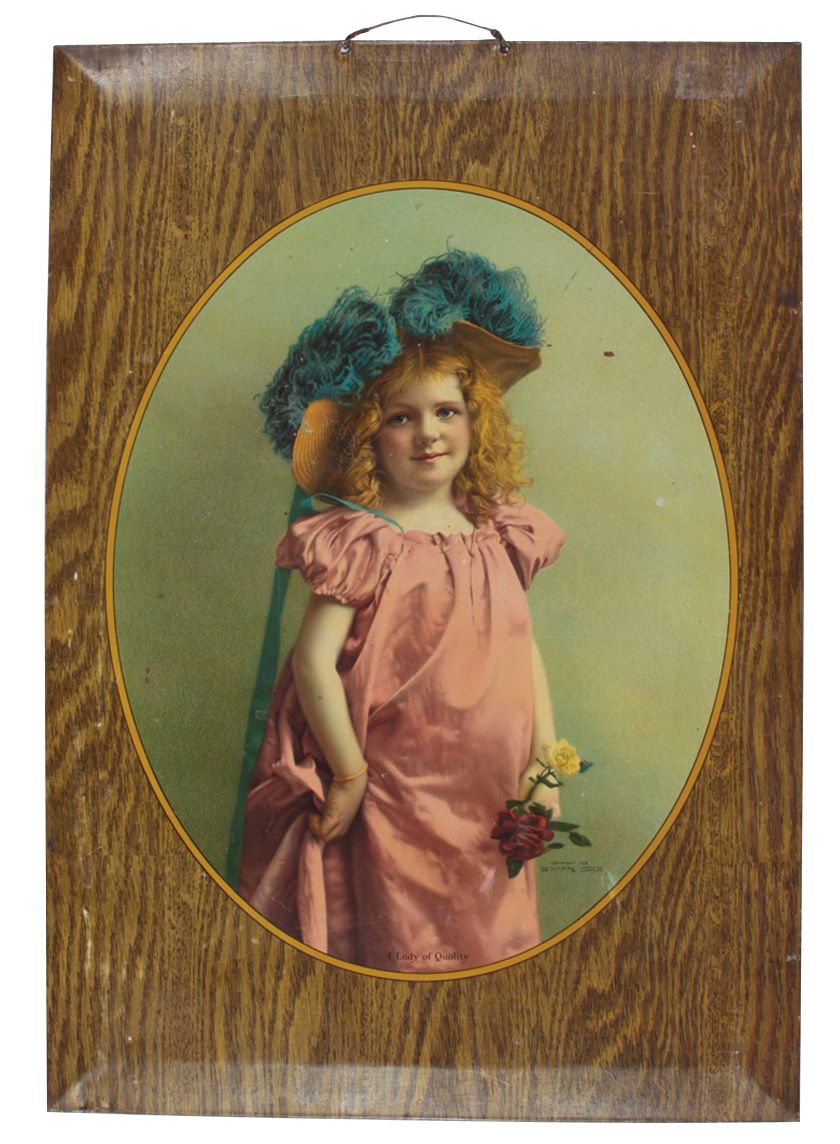 Tobacciana sign, "A Lady of Quality," c.1904, premium given by Sea Lion Tobacco Works, litho on embo
