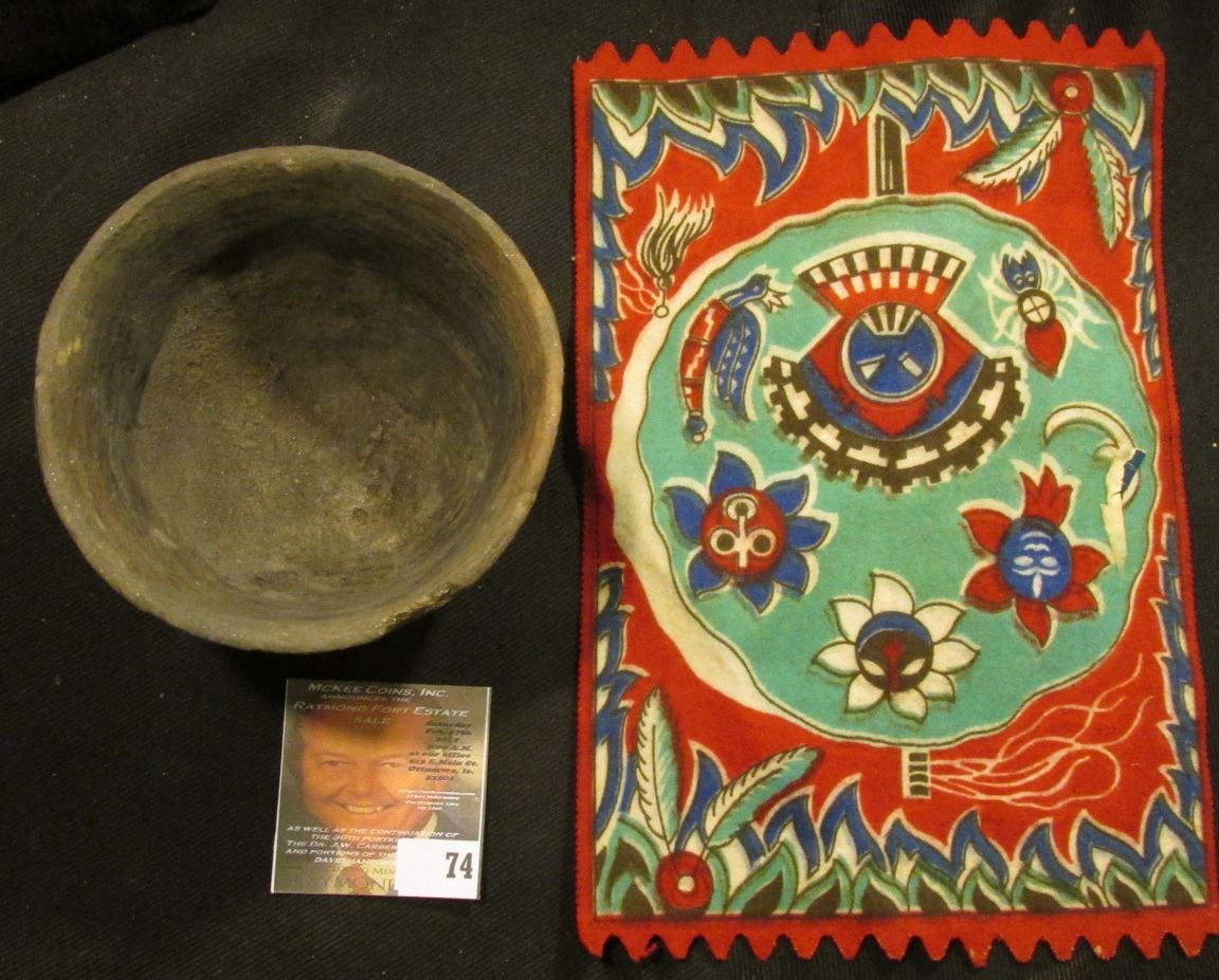 Tobacco Flannel with South American Indian Motif and an excavated Indian Pot, most likely Pre-Columbian.