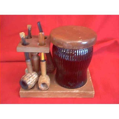 <table width="100%" border="0" cellspacing="0" cellpadding="4"><tr><td><em> </em></td></tr><tr> <td width="100%"> Humidor and Pipe Stand with 4 pipes. The base is wood and the humidor is amber glass with wooden lid and includes 4 pipes. 2 of the pipes has cracked stems. This tobacco humidor is marked "New York City C.W. Products Corp. Duraglas". It measures 6.5 inches tall and 7.5 inches wide and is in very good condition. Also has tobacco pouch inside. </td></tr><tr> <td> </td></tr><tr> <td>Reference #: WR389</td></tr><tr><td>Condition:very good</td></tr><tr><td>Year:20thcentury</td></tr><tr><td>Title:Tobacco Humidor and Pipe Stand 4 Pipes</td></tr><tr><td>Location:Eclectic USA</td></tr></table>