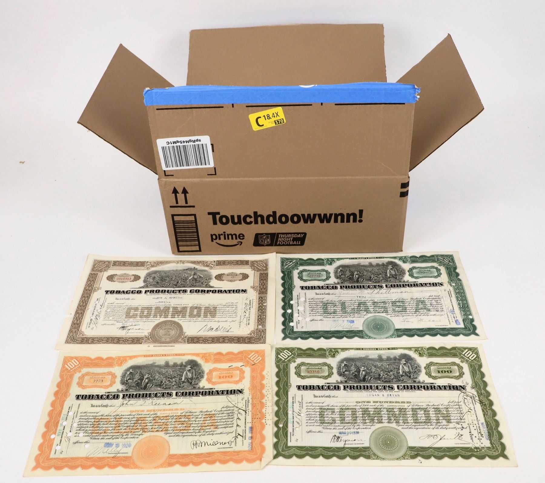 Tobacco Stock Group: Tobacco Products Corporation, about 10 varieties, c.1920s, issued, about 400 pieces.