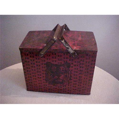 Tobacco Tin Lunch Box-Tiger; 5.50X 10 X 9" tall; some paint wear