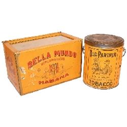 Tobacco & cigar tins (2); Old Partner Tobacco pail, Exc. condition & Bella Mundo Cigar display tin (