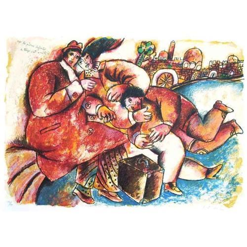 Tobiasse<p>Authentic and Original, Limited Edition Hand Signed stone lithograph. Titled "Sur les Pierres Infines le Temps s'est Arrete" c1999, Stone Lithograph on Arches. Signed and Numbered in Pencil by the artist. The Edition Size is 199. Full Size: 27"x 36". <p>This is not an offset reproduction.<p>The art of Theo Tobiasse reflects a lifetime of struggle and a sense of survival that stems from his experiences as a Jew growing up in Paris during World War II. Tobiasse was born in Israel on April 26, 1927. To escape severe economic conditions his family settled in Paris, France in 1931. During the German occupation of France, Tobiasse and his family survived by going into hiding for two years living in total isolation and darkness. It is this sense of survival and the joy of that realization that typifies Tobiasse's work.<p>When the war ended in 1945, Tobiasse found work at various advertising agencies as a graphic designer. Moving to the South of France, he spent ten years in advertising before he decided in 1961 to concentrate solely on painting. His work reflects many themes including elements of his childhood memories, Jewish history, Biblical themes, and women. Since devoting his time to painting Tobiasse has been exhibiting his work extensively in Europe and the United States . His paintings have been described as having a purposely naive style with comparisons to Marc Chagall. Tobiasse divides his time between his studio at St. Paul de Vence near Nice in the South of France ...