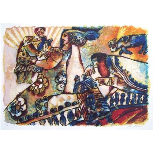 Tobiasse<p>Authentic and Original, Limited Edition Hand Signed stone lithograph. Titled " Un Printemps d'Israel" c1999, Stone Lithograph on Arches. Signed and Numbered in Pencil by the artist. The Edition Size is 199. Full Size: 36" x 27". The condition is original, never framed. <p>This is not an offset reproduction. <p>The art of Theo Tobiasse reflects a lifetime of struggle and a sense of survival that stems from his experiences as a Jew growing up in Paris during World War II. Tobiasse was born in Israel on April 26, 1927. To escape severe economic conditions his family settled in Paris, France in 1931. During the German occupation of France, Tobiasse and his family survived by going into hiding for two years living in total isolation and darkness. It is this sense of survival and the joy of that realization that typifies Tobiasse's work.<p>When the war ended in 1945, Tobiasse found work at various advertising agencies as a graphic designer. Moving to the South of France, he spent ten years in advertising before he decided in 1961 to concentrate solely on painting. His work reflects many themes including elements of his childhood memories, Jewish history, Biblical themes, and women. Since devoting his time to painting Tobiasse has been exhibiting his work extensively in Europe and the United States . His paintings have been described as having a purposely naive style with comparisons to Marc Chagall. Tobiasse divides his time between his studio at St. Paul de Vence near Nice ...