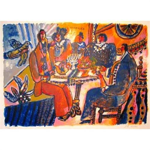 Tobiasse<p>Authentic and Original, Limited Edition Hand Signed stone lithograph. Titled "Hannoukah " c1999, Stone Lithograph on Arches. Signed and Numbered in Pencil by the artist. The Edition Size is 199. Full Size: 36" x 27". The condition is mint, never framed. <p>This is not an offset reproduction. <p>The art of Theo Tobiasse reflects a lifetime of struggle and a sense of survival that stems from his experiences as a Jew growing up in Paris during World War II. Tobiasse was born in Israel on April 26, 1927. To escape severe economic conditions his family settled in Paris, France in 1931. During the German occupation of France, Tobiasse and his family survived by going into hiding for two years living in total isolation and darkness. It is this sense of survival and the joy of that realization that typifies Tobiasse's work.<p>When the war ended in 1945, Tobiasse found work at various advertising agencies as a graphic designer. Moving to the South of France, he spent ten years in advertising before he decided in 1961 to concentrate solely on painting. His work reflects many themes including elements of his childhood memories, Jewish history, Biblical themes, and women. Since devoting his time to painting Tobiasse has been exhibiting his work extensively in Europe and the United States . His paintings have been described as having a purposely naive style with comparisons to Marc Chagall. Tobiasse divides his time between his studio at St. Paul de Vence near Nice in the South ...