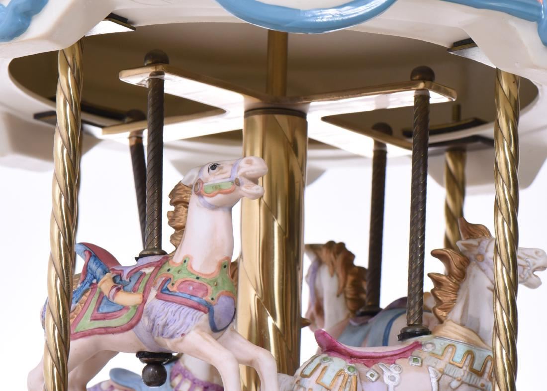 Tobin Fraley, The American Carousel Second Edition Ed M.C. Illions & Sons 4 Horse Music Box, Second Edition #992/9500. Signed Tobin Fraley. (Photos Represent The Condition Of The Lot.) Estimated less than 50 yrs old. (Pangaea Auctions) Size: See Ruler Photo. (Photos Represent The Condition Of The Lot.)
