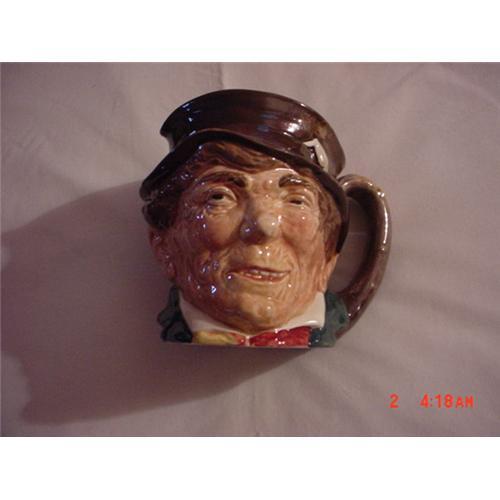 This is a Royal Doulton "Paddy" toby mug. The bottom shows the Royal Doulton logo, with the lion on top, the word "Paddy", numbered R&No817032. This mug is in great condition - like brand new. I love his silly grin with his teeth showing and it looks like a pipe stuck into the brim of his hat. On the rear of the mug is the name "Paddy".