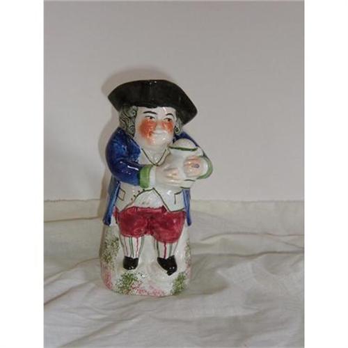 Staffordshire toby jug. Man in a blue jacket holding a jug.