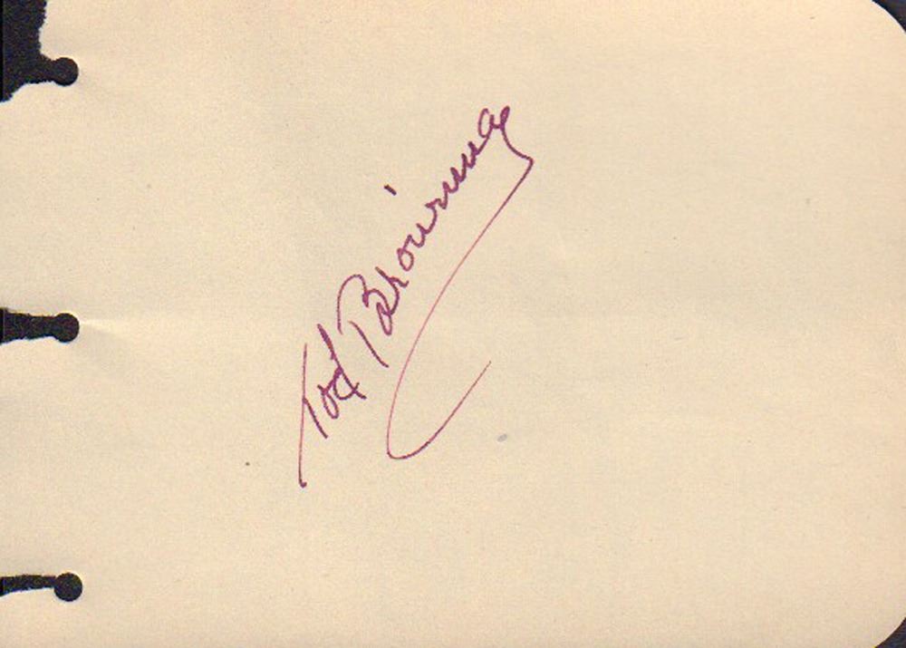 Autograph book page signed by Tod Browning. All items come with a certificate of authenticity good for the life of the piece.