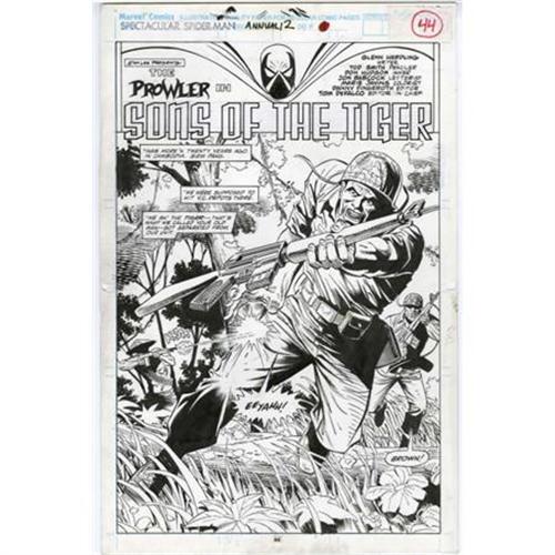 <B>Tod Smith and Don Hudson - Spectacular Spider-Man Annual #12, Splash page 44 Original Art (Marvel, 1992).</B></I> Brown takes a shot in the hip from a Cambodian sniper, in this deadly splash page penciled by Tod Smith and inked by Don Hudson. The art has an image area of 10" x 15" and includes the original title and indicia paste-up type. In Excellent condition.<BR><BR><b>Shipping:</b> Flat Material, Small (<a target="_blank" href="http://www.heritageauctions.com/common/shipping.php">view shipping information</a>)