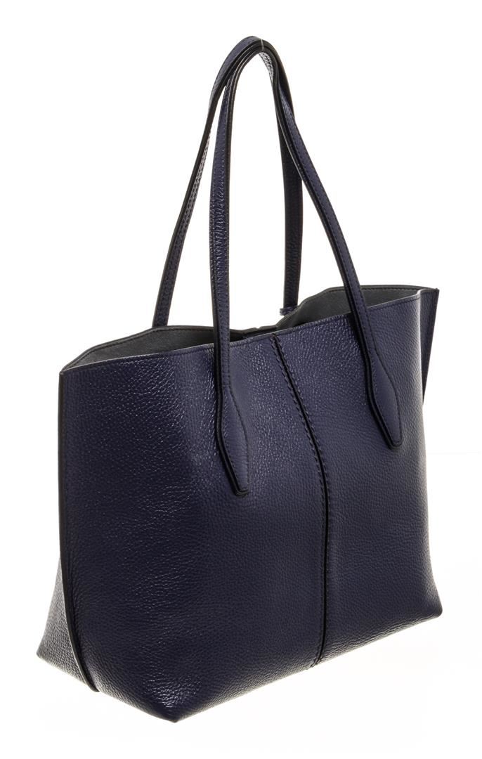 One Tod's Blue Leather Joy Medium Tote Bag. Item is sold AS-IS. All available information is listed in the description and shown in the photo. tod's blue leather joy medium tote bag with metal feet, removable zip pocket, removable internal pockets, metal logo charm, snap button closing 30 x 25 x 16 cm, / 11.8" x 9.84" 6.29" Inches