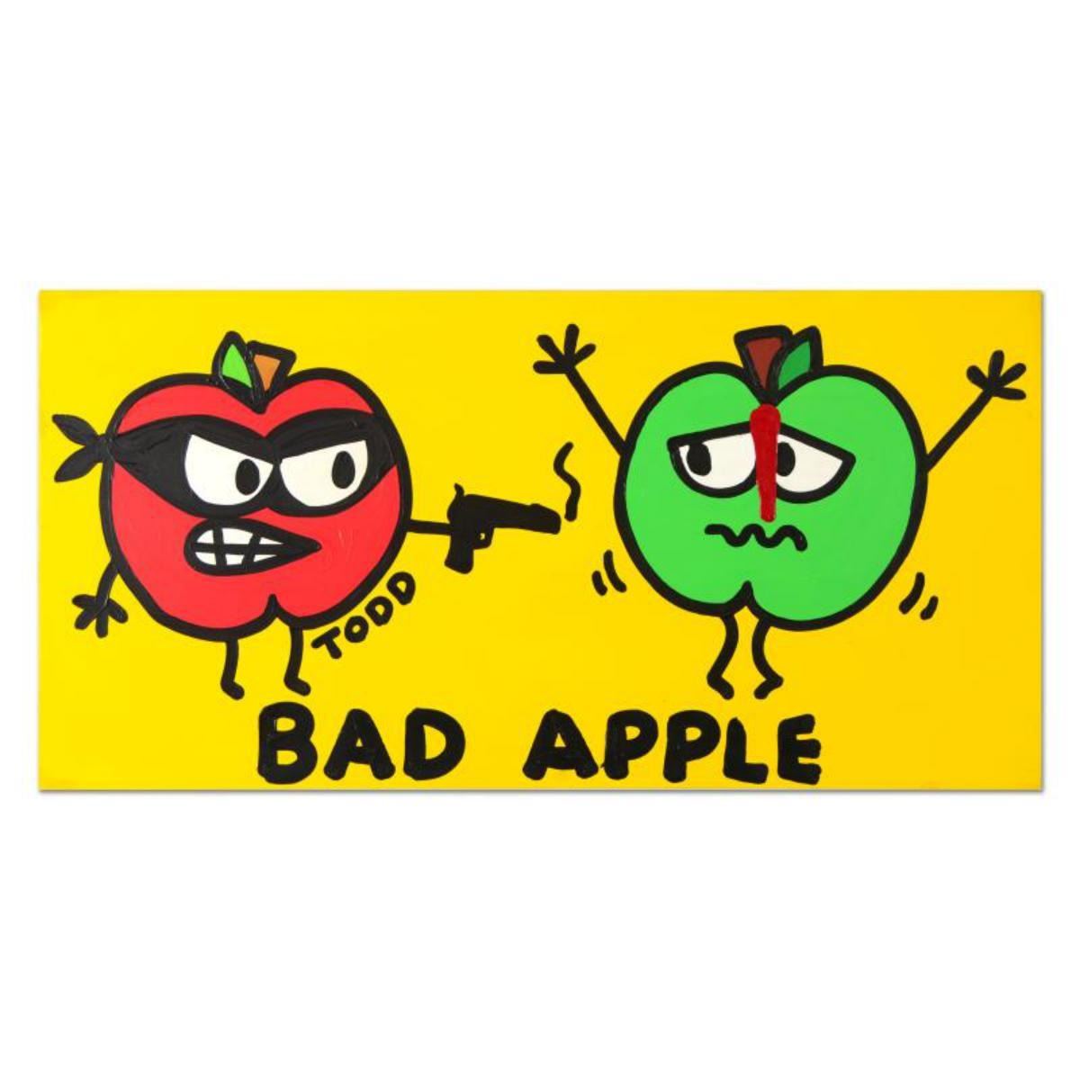 Todd Goldman, "Bad Apple" Original Acrylic Painting on Gallery Wrapped Canvas, Hand Signed with Cert