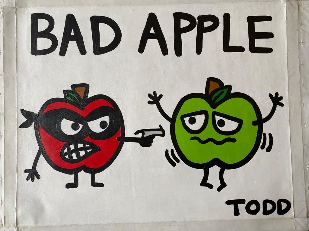 Todd Goldman "Bad Apple" Hand Signed Original Acrylic on Canvas Dimensions: 24 x 30 inches