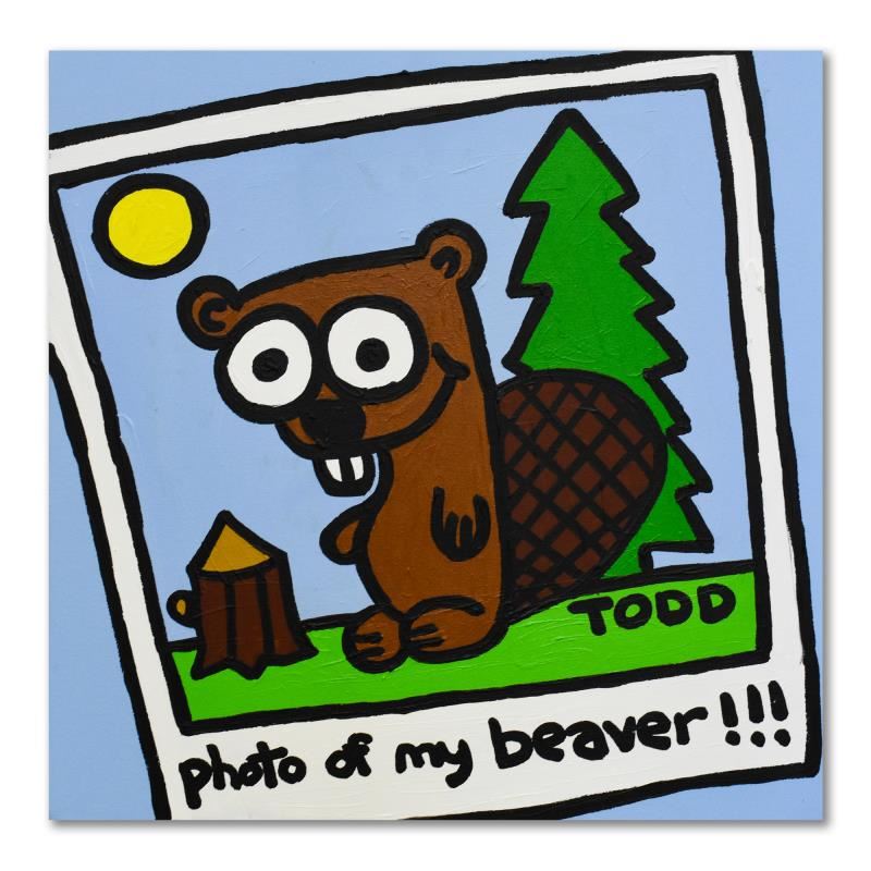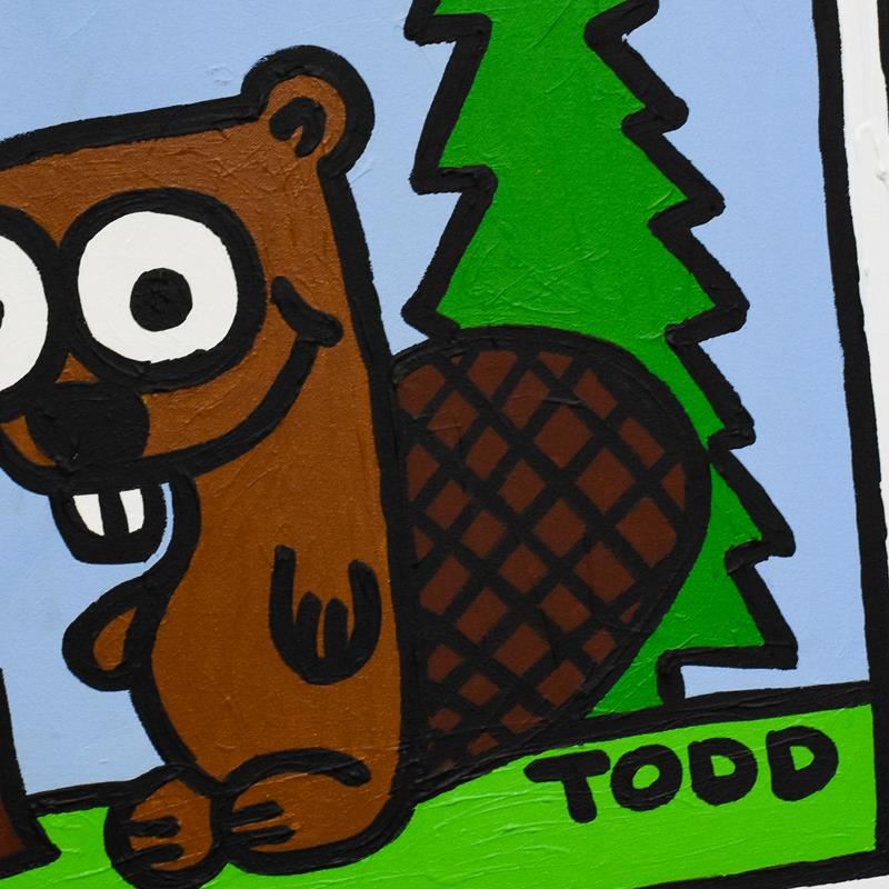 "Beaver" is an original acrylic painting on canvas by Todd Goldman, hand signed by the artist. This piece comes gallery wrapped. Includes Letter of Authenticity. Measures approx. 30" x 30" (image). Please note: There is wear on the corners and edges of th