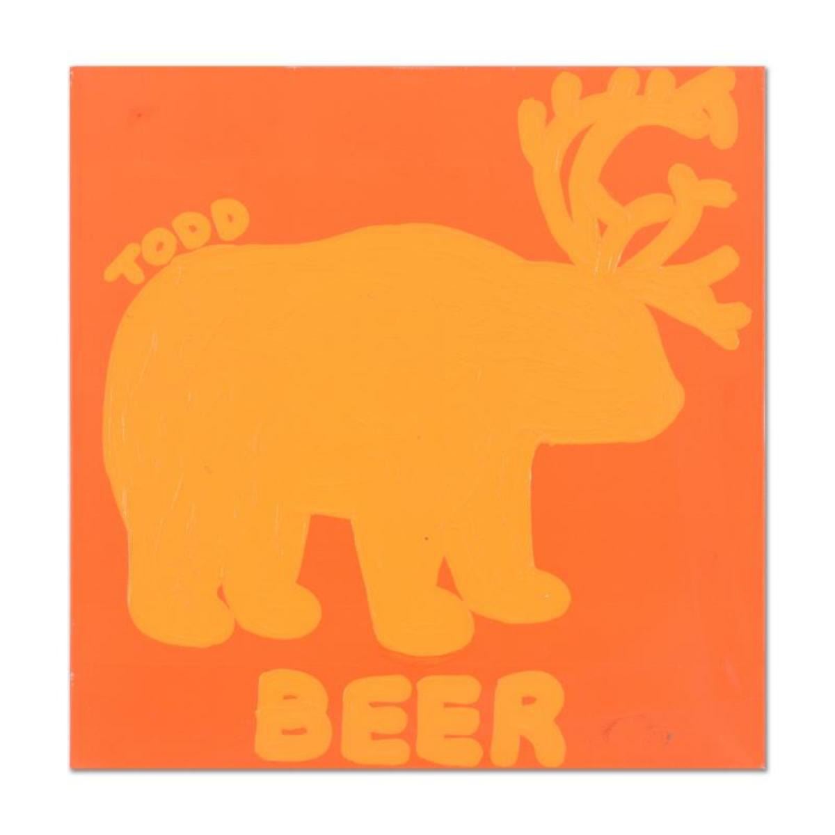 "Beer" is an original acrylic painting on canvas by Todd Goldman, hand signed by the artist. This piece comes gallery wrapped. Includes Certificate of Authenticity. Measures approx. 24" x 24" (image). ** Please note: There is some smudging on the bottom-right border and a spot on the top-left corner. ** Reference #: 234850