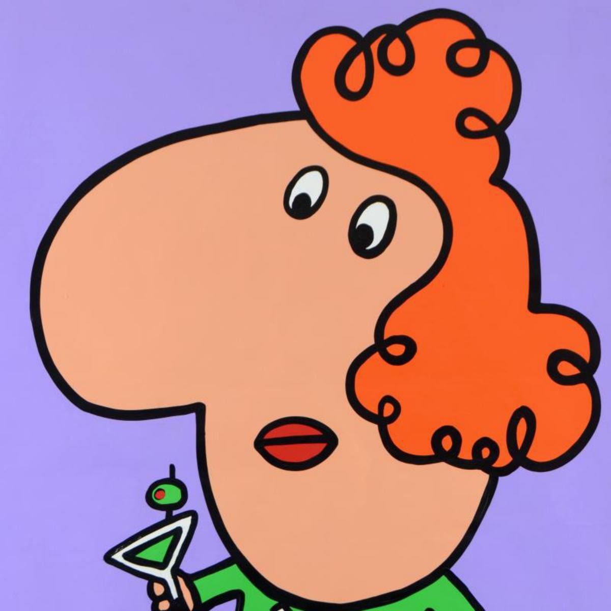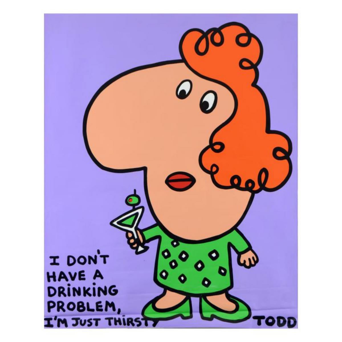 "Drinking Problem" is an original acrylic painting on canvas by Todd Goldman, hand signed by the artist. Includes Certificate of Authenticity. Measures approx. 48" x 60" (image). ** Please note: The canvas may have minor imperfections (small scuffs or paint chipping) that are only noticeable upon close inspection. Also, there are minor creases that may be concealed when the piece is stretched. ** Reference #: 220681