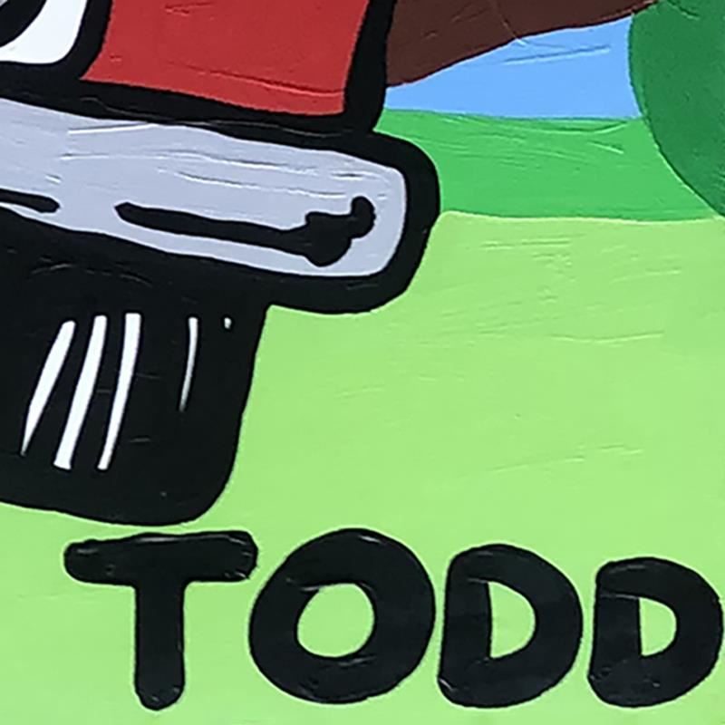 "Goodbye Kitty" is an original acrylic painting on gallery wrapped canvas by Todd Goldman. The piece is hand signed by the artist and includes a letter of authenticity. Measures approximately 48" x 48" (image).