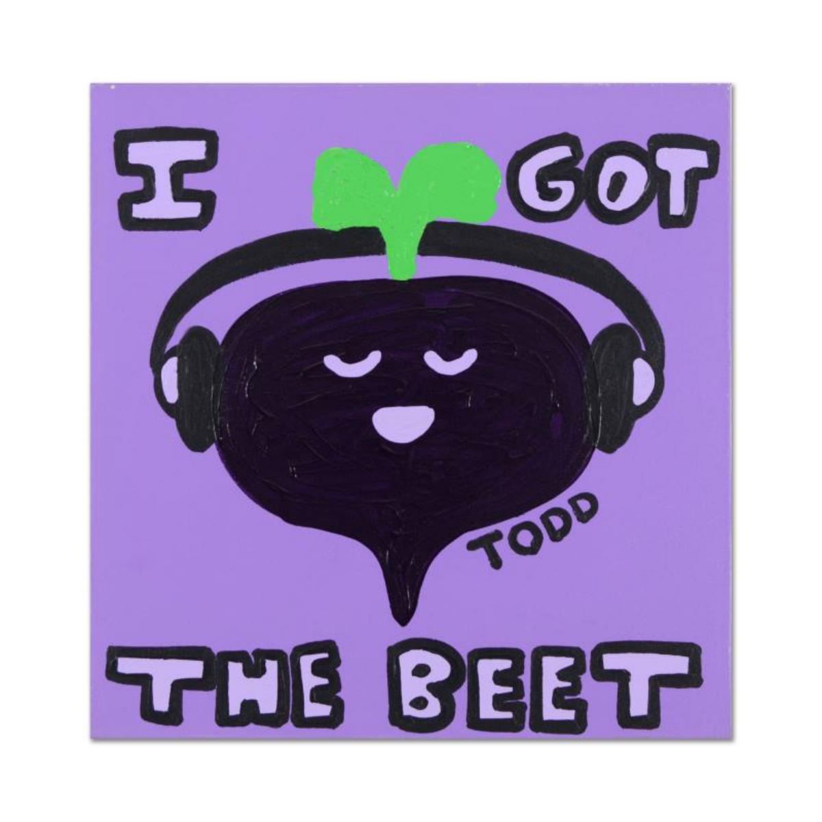 "I Got the Beet" is an original acrylic painting on canvas by Todd Goldman, hand signed by the artist. This piece comes gallery wrapped. Includes Certificate of Authenticity. Measures approx. 24" x 24" (image). Please note: There is wear on the corners and edges of this piece. Reference #: 234854