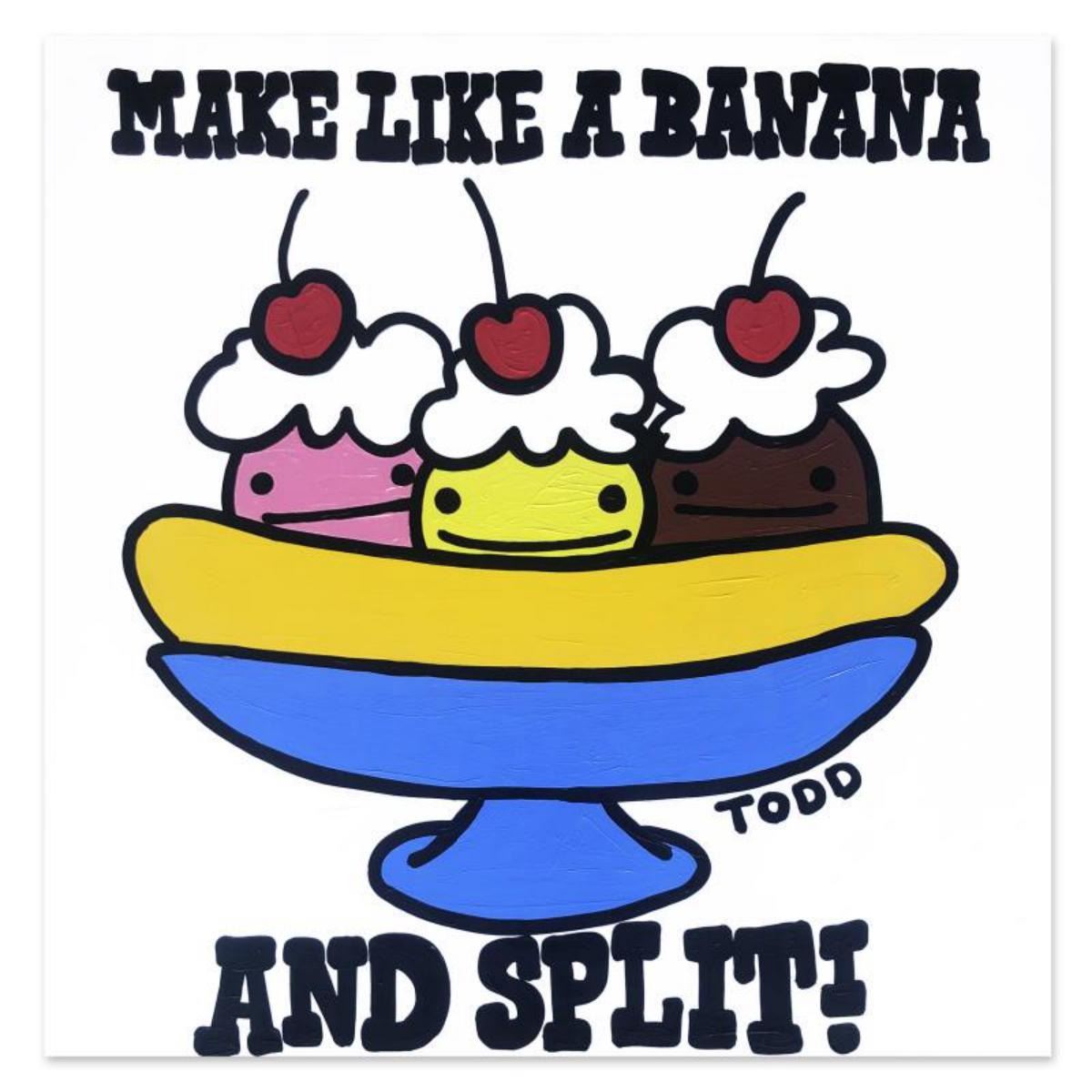 "Make Like a Banana" is an original acrylic painting on gallery wrapped canvas by Todd Goldman. The piece is hand signed by the artist and includes a letter of authenticity. Measures approximately 48" x 48" (image). Reference #: 242693