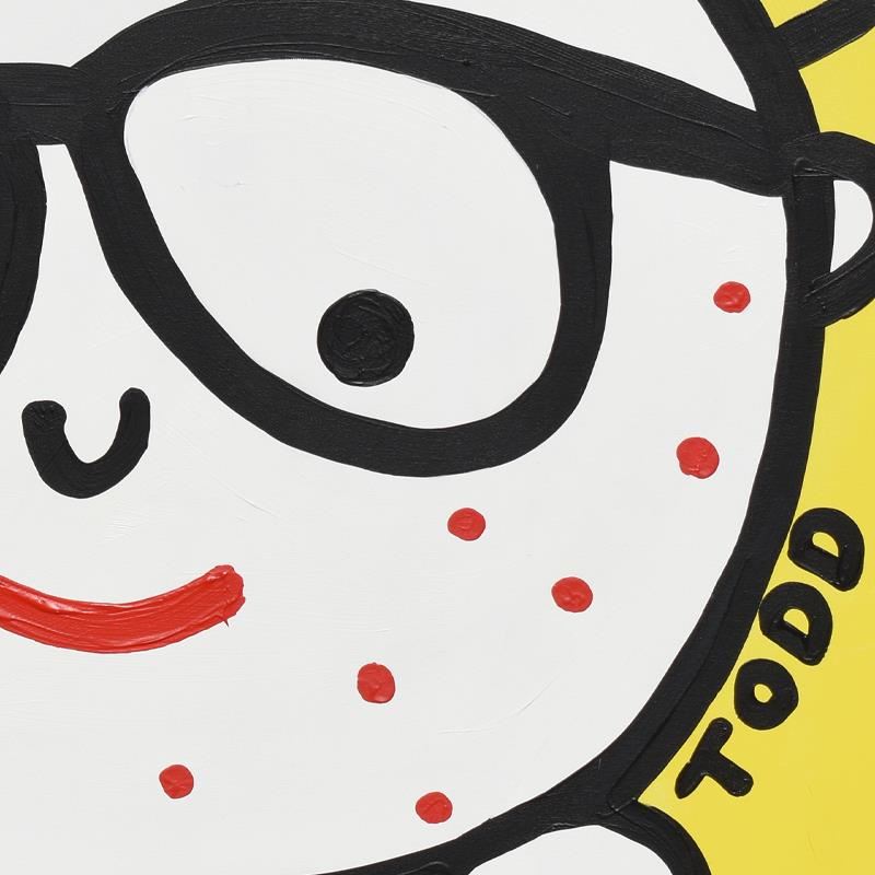 "Nerds Gone Wild" is an original acrylic painting on gallery wrapped canvas by Todd Goldman, hand signed by the artist. Includes Letter of Authenticity. Measures approx. 36" x 48" (image). Due to the way this piece was stored there may be minor wear or signs of age (such as wear on the corners) but the piece is in overall good condition.