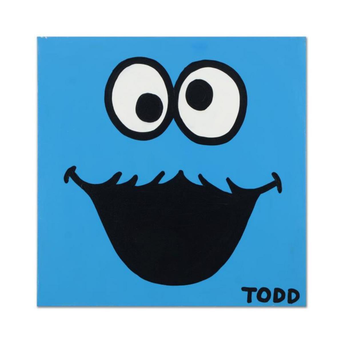 This is an original acrylic painting on canvas by Todd Goldman, hand signed by the artist. This piece comes gallery wrapped. Includes Certificate of Authenticity. Measures approx. 24" x 24" (image). Please note: There is wear on the corners and edges of this piece. Reference #: 238030