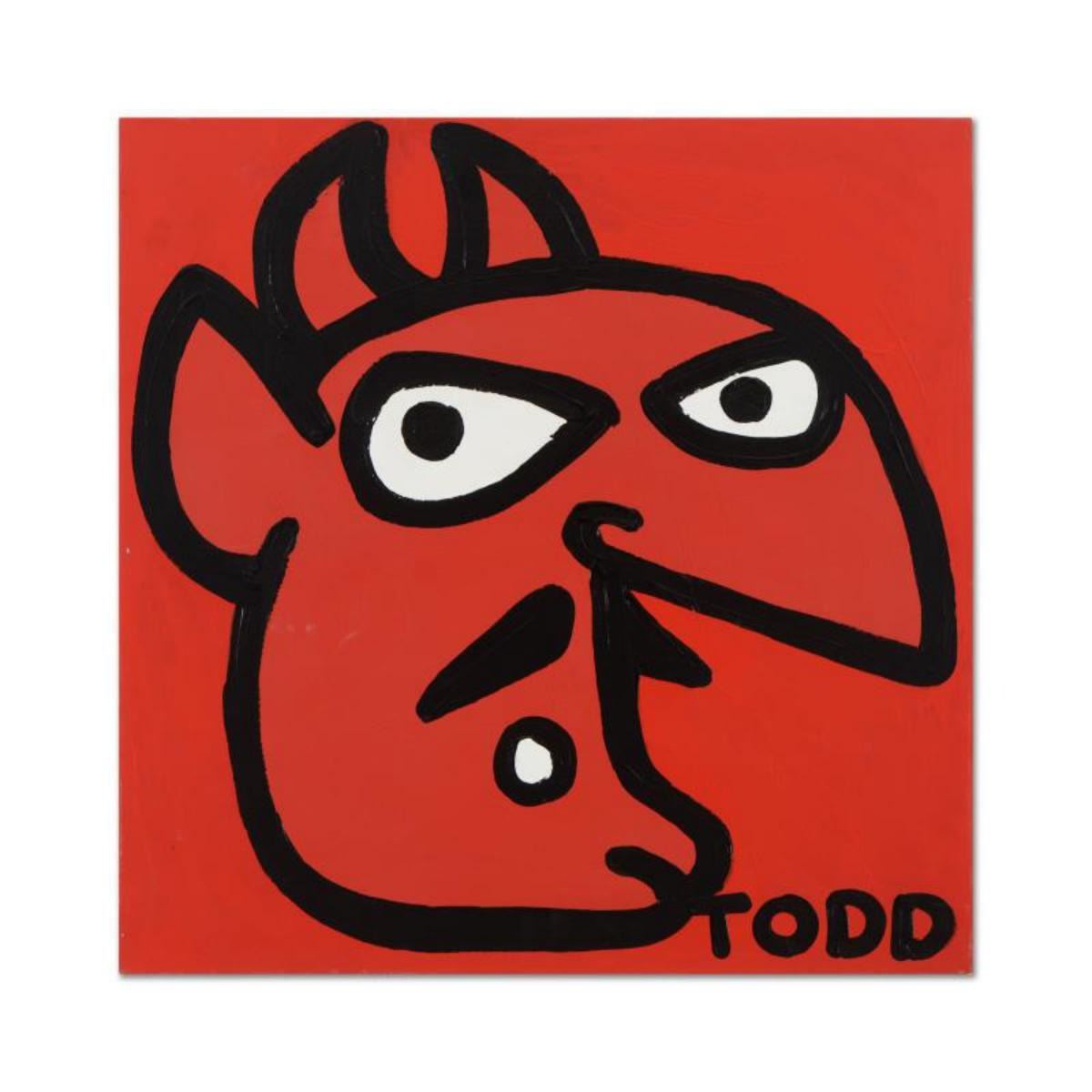 This is an original acrylic painting on canvas by Todd Goldman, hand signed by the artist. This piece comes gallery wrapped. Includes Certificate of Authenticity. Measures approx. 24" x 24" (image). Please note: There is wear on the corners and edges of this piece. Reference #: 238045