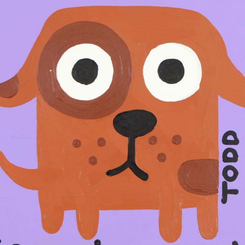 We acquired this piece as part of a larger collection. We do not approve of its inappropriate content. "Eat Shit" is an original acrylic painting on canvas by Todd Goldman, hand signed by the artist. This piece comes gallery wrapped. Includes Certificate of Authenticity. Measures approx. 24" x 24" (image). Please note: There is wear on the corners and edges of this piece.