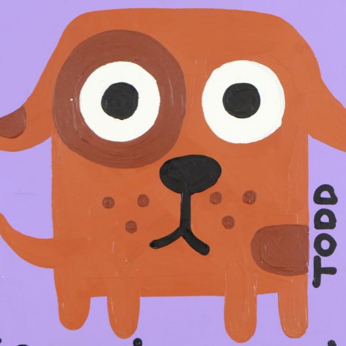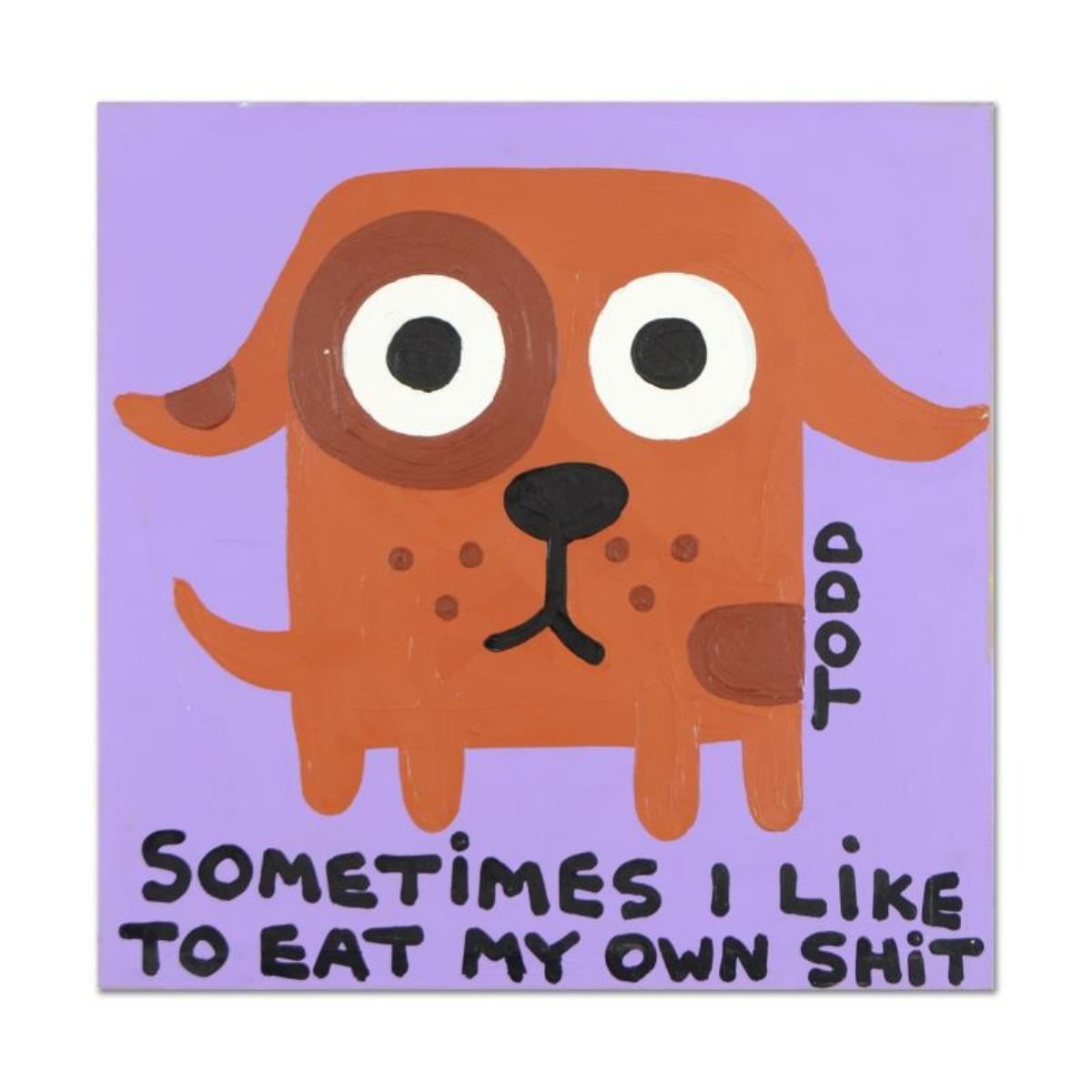 Todd Goldman Original by Goldman Original. We acquired this piece as part of a larger collection. We do not approve of its inappropriate content. "Eat Shit" is an original acrylic painting on canvas by Todd Goldman, hand signed by the artist. This piece comes gallery wrapped. Includes Certificate of Authenticity. Measures approx. 24" x 24" (image). Please note: There is wear on the corners and edges of this piece.