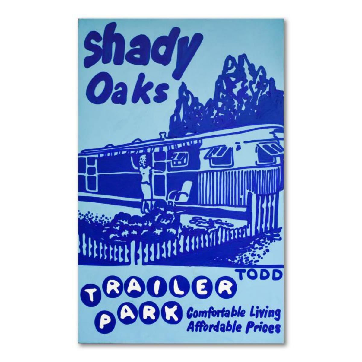 "Shady Oaks" is an original acrylic painting on canvas by Todd Goldman, hand signed by the artist. This piece comes gallery wrapped. Includes Letter of Authenticity. Measures approx. 48" x 72" (image). Please note: There is wear on the corners and edges of this piece. This piece is available for free pickup in Los Angeles - contact for more info. Reference #: 238062
