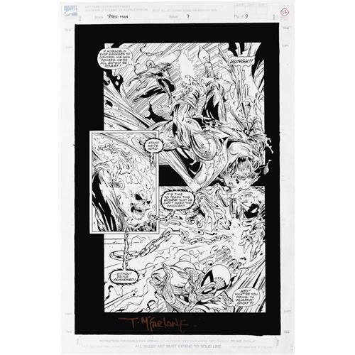 <B>Todd McFarlane - Spider-Man #7, Splash page 9 Original Art (Marvel, 1991).</B></I> The Ghost Rider wants the Hobgoblin, and Spidey's caught in the middle! If you like ghosts and goblins, you'll love this total Todd McFarlane page from "Masques: Part Two," written and illustrated by McFarlane. The art has an image area of 11.5" x 17.5" and the condition is Excellent. Signed by Todd McFarlane at the bottom. <BR><BR><B>Important notice:</B> Heritage usually auctions material at the rate of 200-250 lots per hour. On some occasions eBay Live bid software or the Internet may not be able to keep up with the pace of the auction. We recommend placing a realistic absentee bid now as insurance to avoid disappointment. Occasionally the auctioneer may eliminate or reject an eBay Live bid, and the auctioneer may also reopen a lot after the close of the eBay live bidding (usually because we missed an audience bid), and may reject your bid even if it shows you as the winning bidder. By bidding via eBay Live, you agree that Heritage may award the lot to another bidder at its sole discretion under the circumstances described above or any other reasonable circumstances. Since eBay bids are not shown to us until we open the lot on the floor, we treat those bids just like floor bids. In most cases the floor responds before the eBay bid is presented to us, due to Internet lag time, so for consistency we have made it a policy that floor bids are always considered first over tie eBay live bids. Also please note that all Heritage lots purchased through eBay Live carry a 22.5% Buyer's Premium. Please make sure you read the Terms and Conditions before you bid. This lot is being auctioned in conjunction with a live floor auction by Heritage Auction Galleries. All final auction and invoice information will be supplied by Heritage Auction Galleries, and all other information should be considered preliminary. Lot:41001 <BR><BR><B>Winning Notification and Billing:</B> After the FINAL session in this auction is complete, Heritage will send e-mail and snail mail invoices. This process normally takes several days. All final auction and invoice information will be supplied by Heritage Auction Galleries, and all other information should be considered preliminary. <BR><BR>This auction will be conducted on a live auction floor and over the Internet through eBay Live. If you choose to place an absentee bid, please take a moment to <font color='#0000ff'><u><a href='http://pages.ebay.com/liveauctions/help/before/laabsentee.html'>learn how eBay Live absentee bidding works</a></u></font><font color='#000000'>