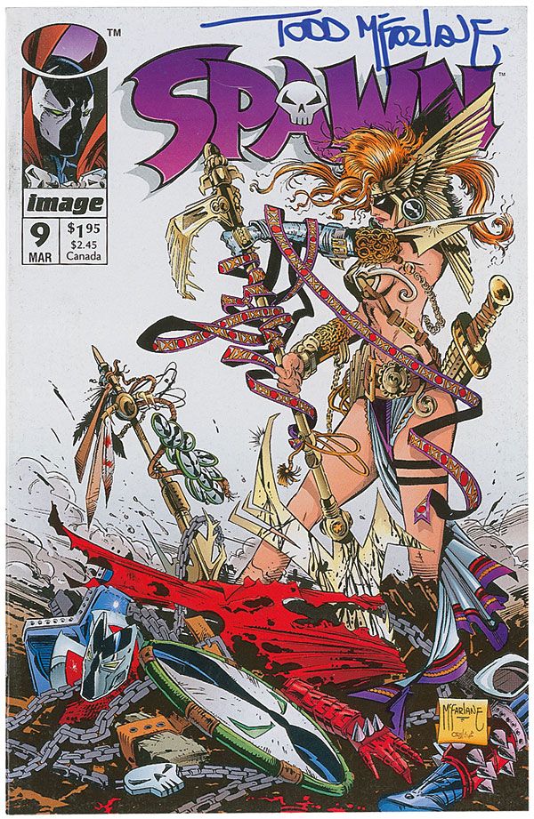 Spawn comic book, #9, dated March 1993, signed on the front cover in blue felt tip. In fine condition.