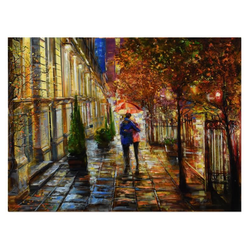 "Together Stroll" is an original oil painting on stretched canvas by Vadik Suljakov, hand signed by the artist. Includes Letter of Authenticity. Measures approx. 40" x 30" (image).