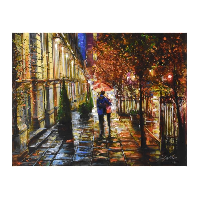 "Together Stroll" is a hand embellished limited edition giclee on canvas by Vadik Suljakov, numbered and hand signed by the artist. Includes Certificate of Authenticity. Measures approx. 26" x 20" (image).