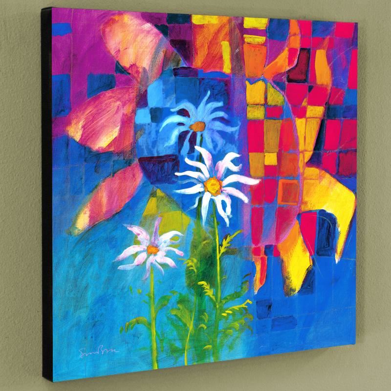 Simon Bull depicts gleaming flowers with bold hues and delicate details, creating graceful and elegant pieces of art. "Together We Chase The Sun" is a limited edition giclee on canvas, numbered and bearing Bull's authorized signature. This piece is gallery wrapped and ready to hang. Includes Certificate of Authenticity! Measures approx. 20" x 20" x 1.5" (image).