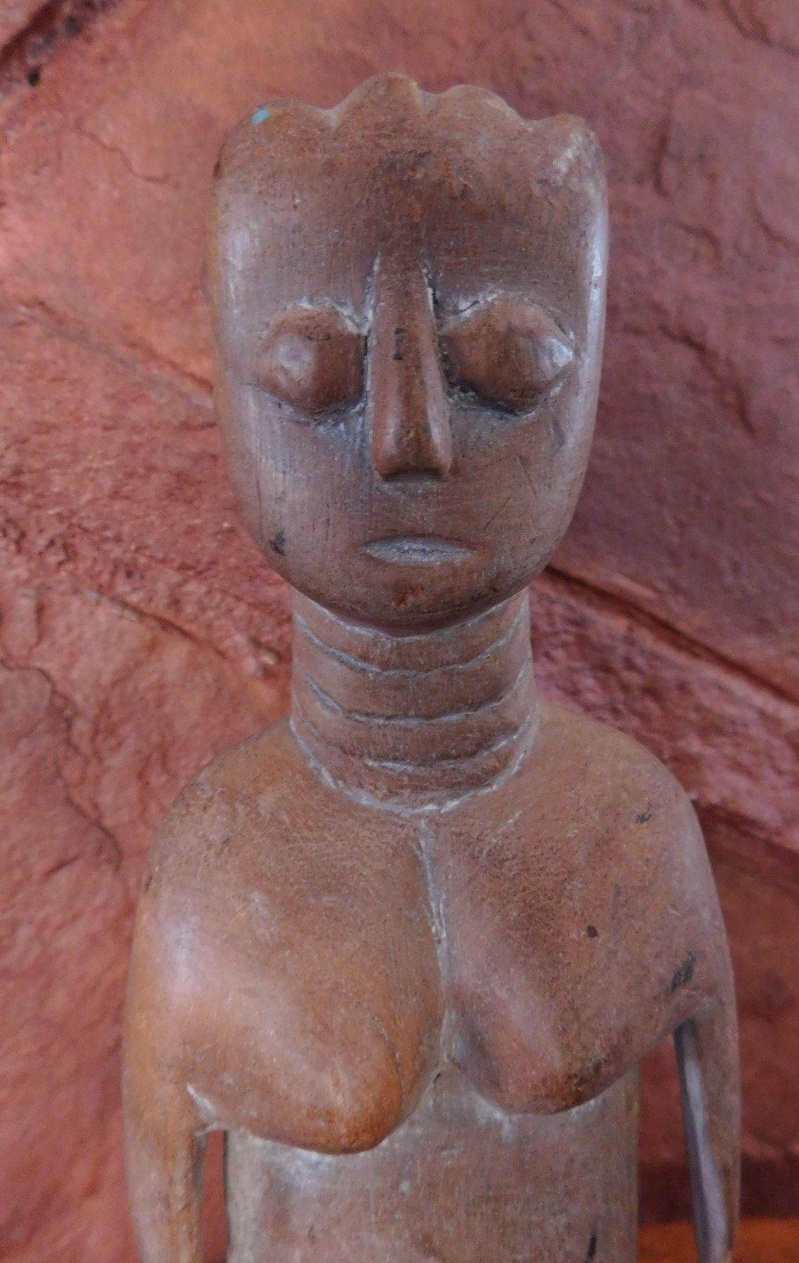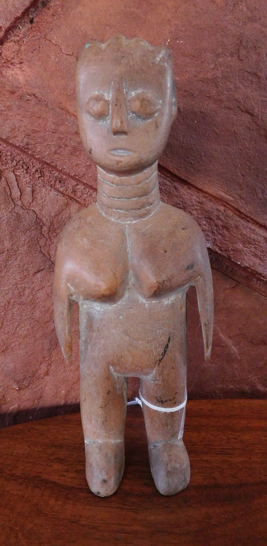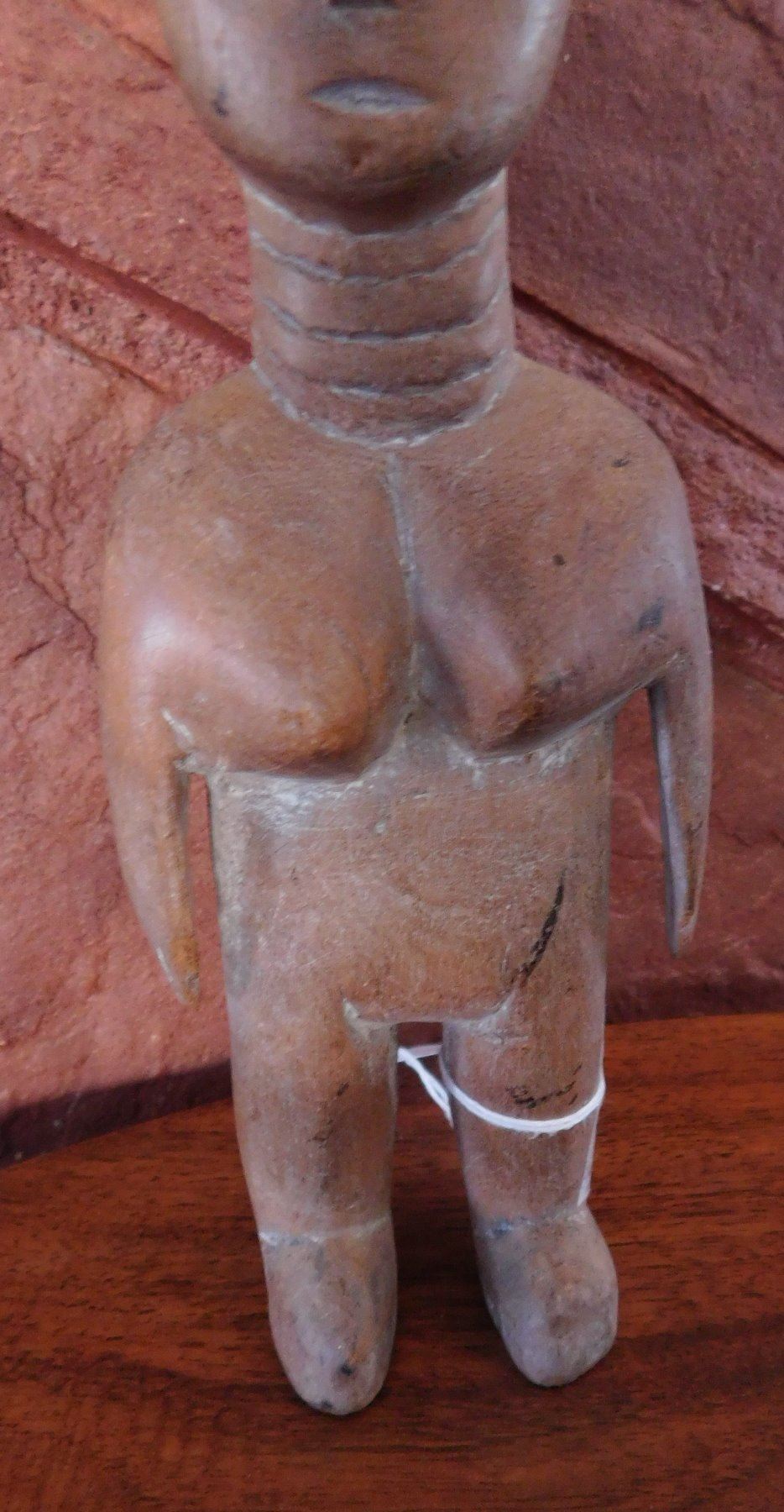 Togo Female Figure, early 20th century item. Made of wood, the item is 8" tall. Guinea. Condition: Right arm damage, see images. Shipping: $25.50 w/insurance and signature.