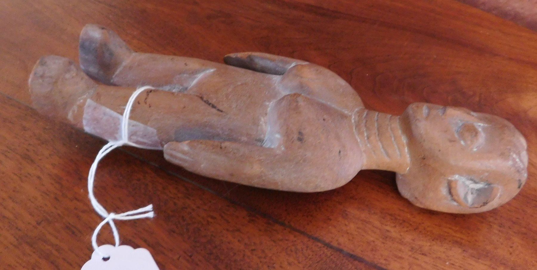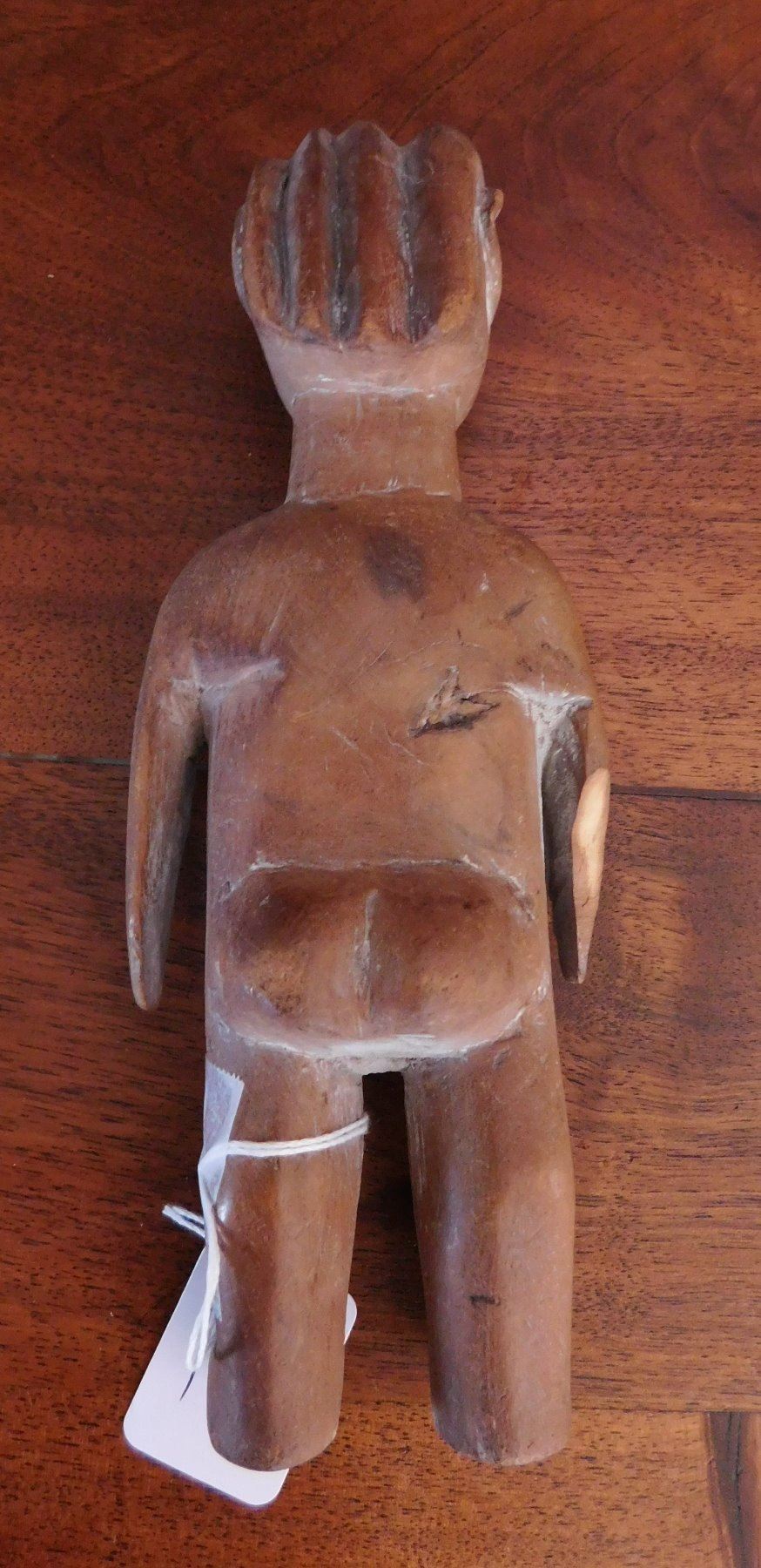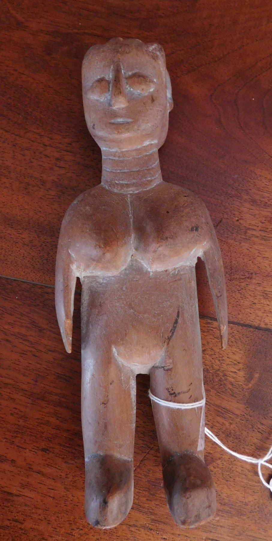 Togo Female Figure, early 20th century item. Made of wood, the item is 8" tall. Guinea. Condition: Right arm damage, see images. Shipping: $25.50 w/insurance and signature.