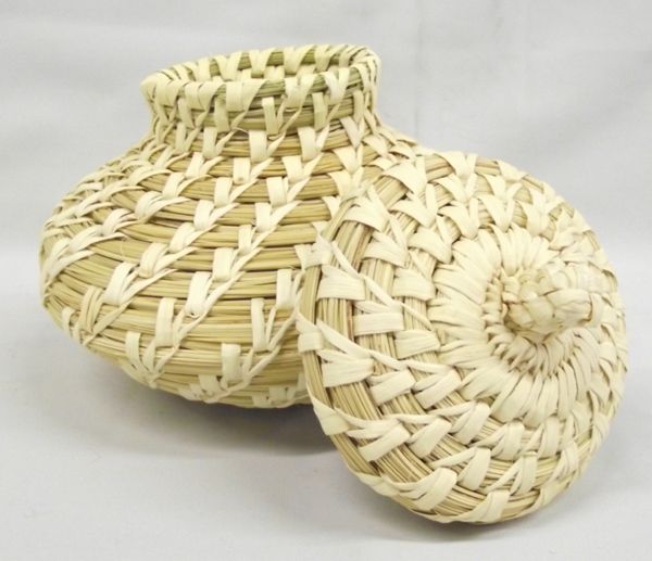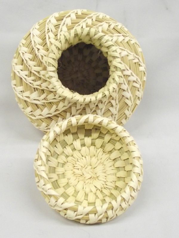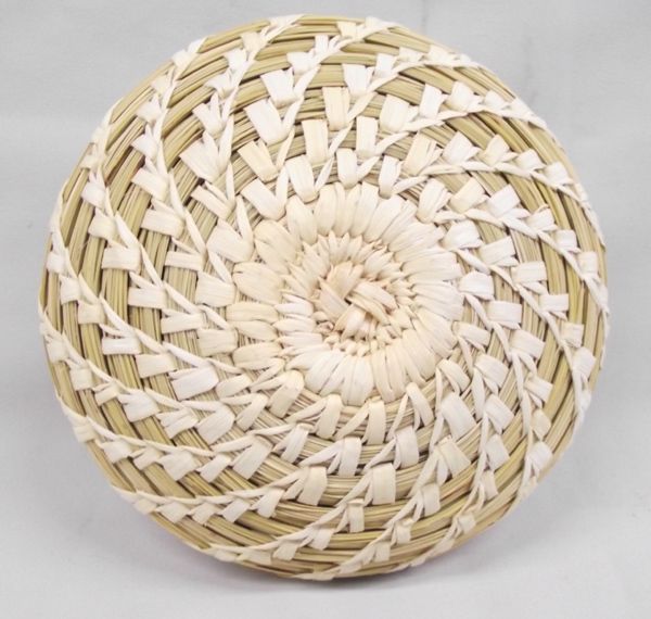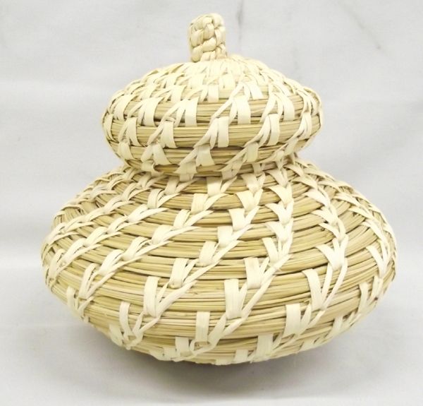 Native American Tohono O'Odham Lidded Basket, beautifully woven wheat pattern, very clean and like new, the Tohono O'odham Nation is a federally recognized Tribe located in southwestern and central Arizona. Tohono O'odham translates as ''desert people'', measures approx. 6'' x 6''