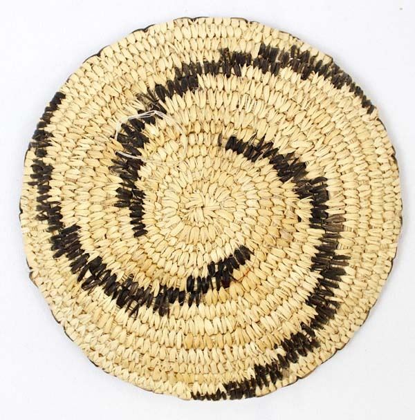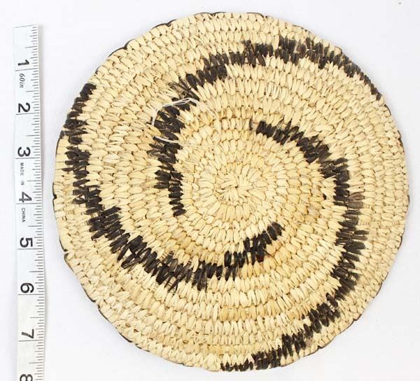Native American Tohono O'odham Basket w/ Swirl Pattern, measures 8''D x 1.5''H