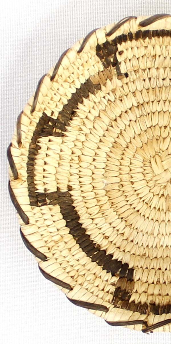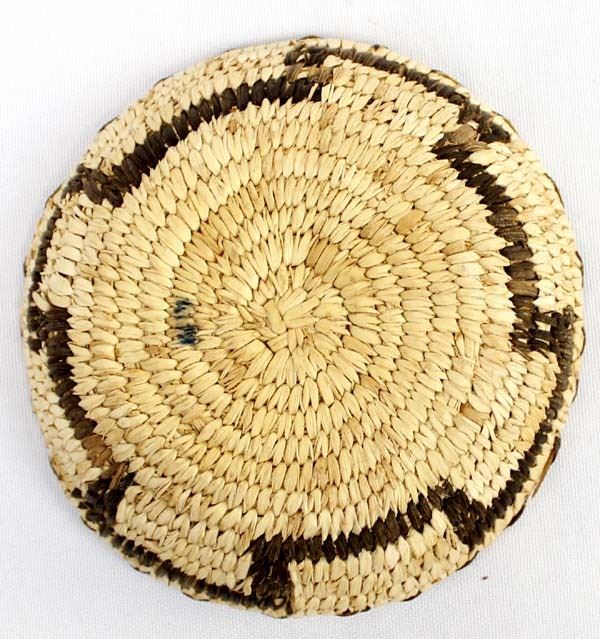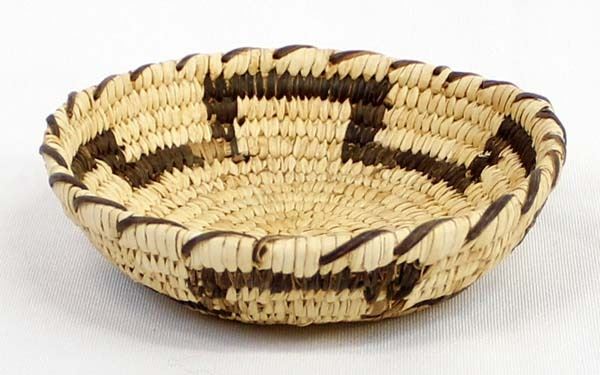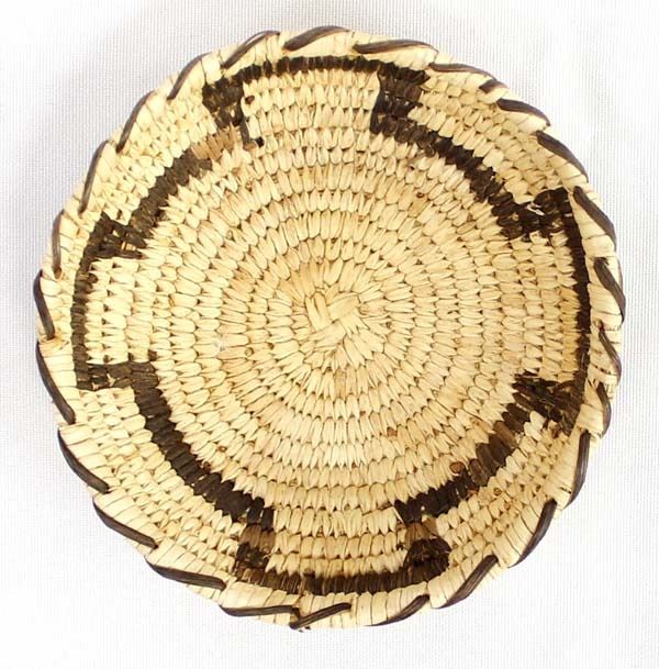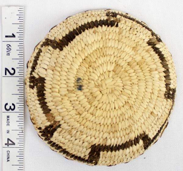 Native American Tohono O'odham Basketry Shallow Bowl, measures 1.5'' x 4''D