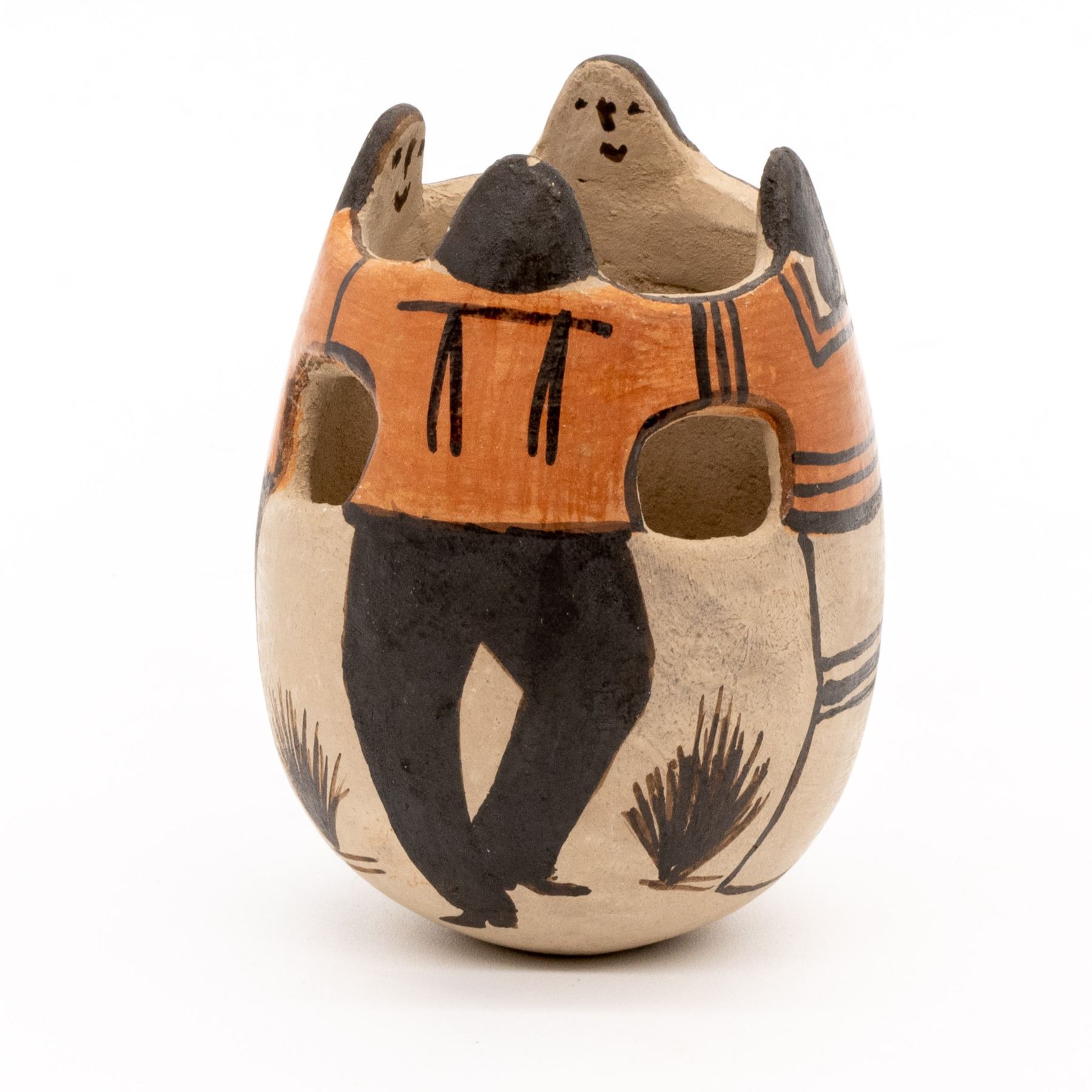 Native American Tohono O'odham Friendship Pottery Jar by the Angea Family of potters, measures 3'' x 3.5'' and is signed on the bottom