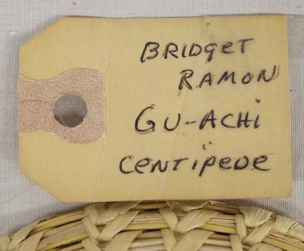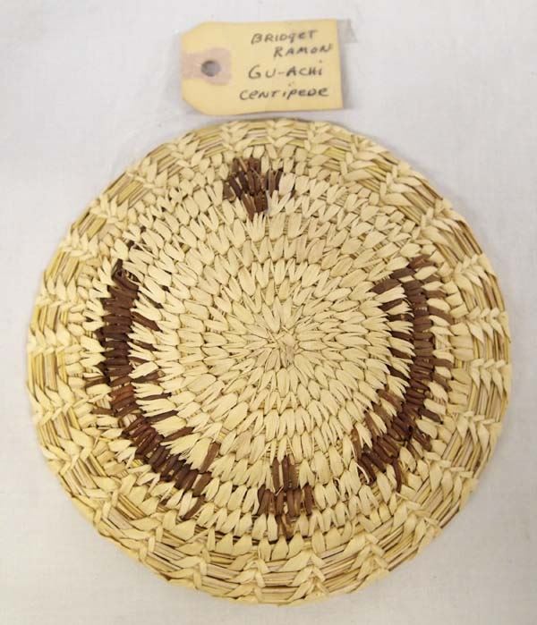 Native American Tohono O'odham Gu-Achi Centipede Basket by Bridget Ramon, measures 5.5''D x 1''H, comes with small informational tag