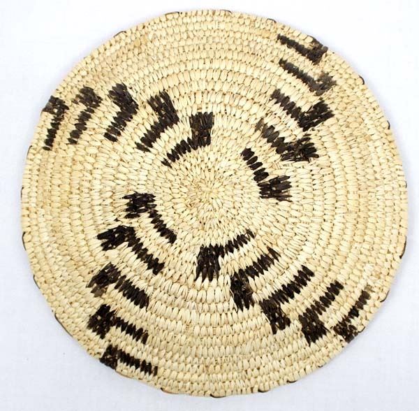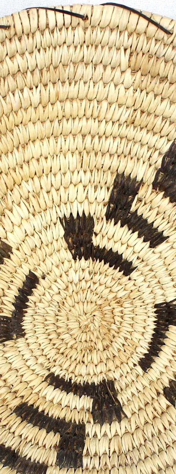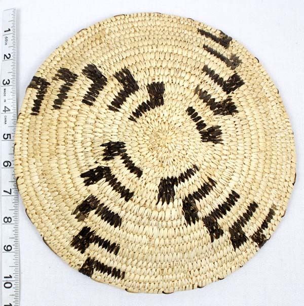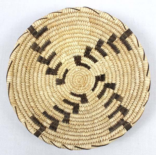 Native American Tohono O'odham Whirling Log Design Basket, measures 2''H x 10''D, yucca and bear grass