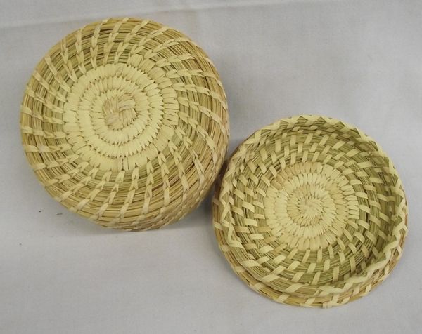 Tohono O'odham Woven Baskets, largest measures 3.5''H x 11.5''W, #1 Basketry Bowl #2 Lidded Cylindrical Basket with Lid and Handle