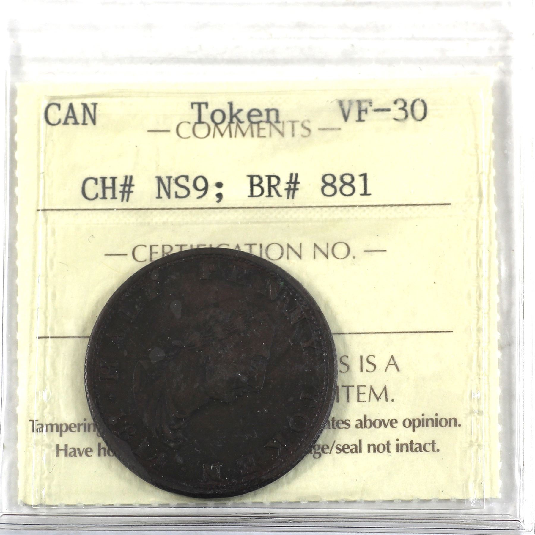 Token 1814 Nova Scotia Half Penny Carritt & Alport Token CH# NS-9 BR# 881 ICCS Certified VF-30