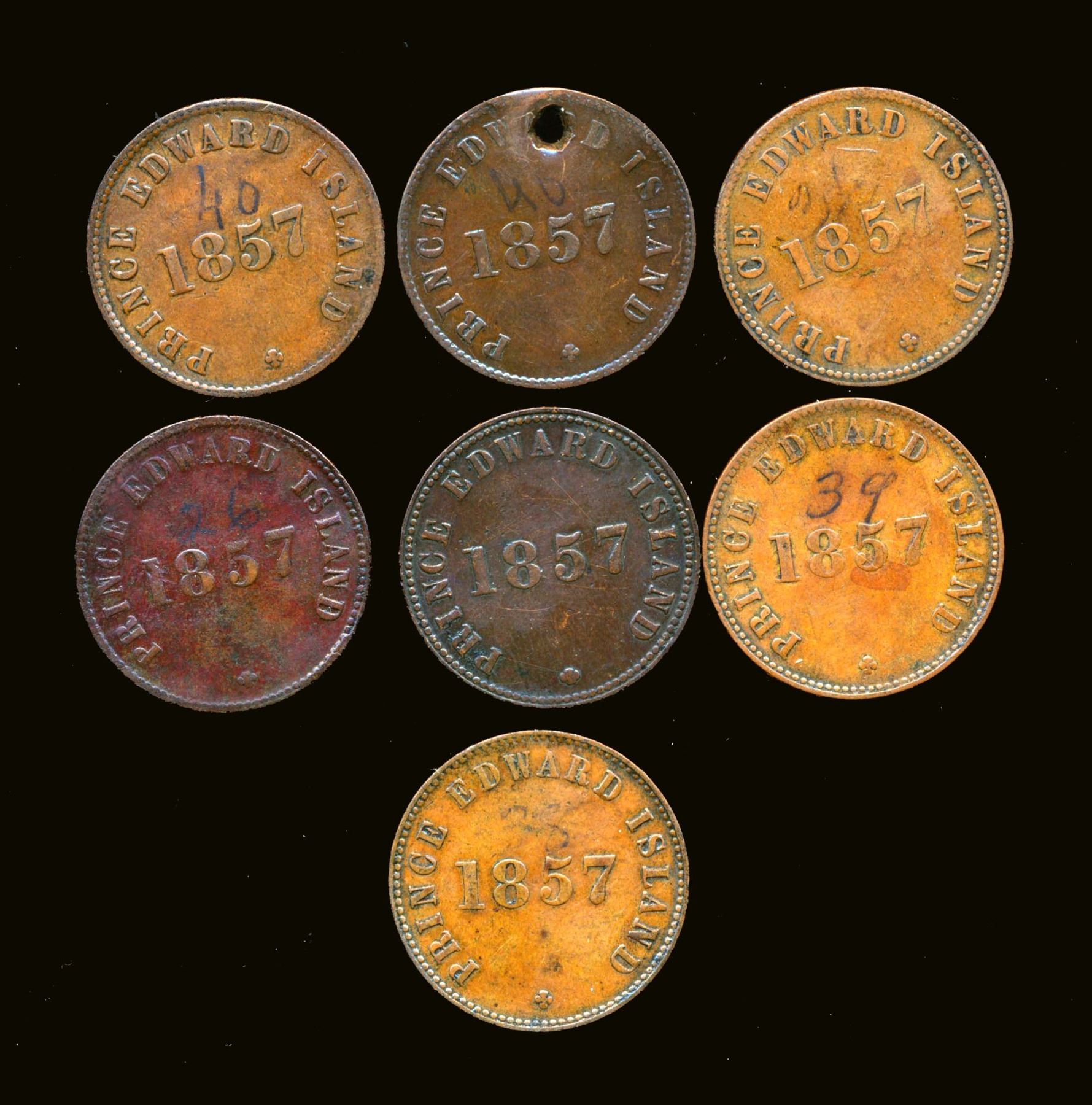 1 x PEI-57 Co-26 4.9 gm. (obv: defective W), 1 x PEI-65 Co-34 4.9 gm. VF, PEI-67 Co-36 5,0 gm. F, 1 x PEI-69 Co-38 5.0 gm. F, 1 x PEI-70 Co-39 5.2 gm. F, 1 x PEI-71 Co-40 4.9 gm. (obv: die break on I in Prince) Holed VF, 1 x PEI-71 Co-40 4.9 gm. in VF.