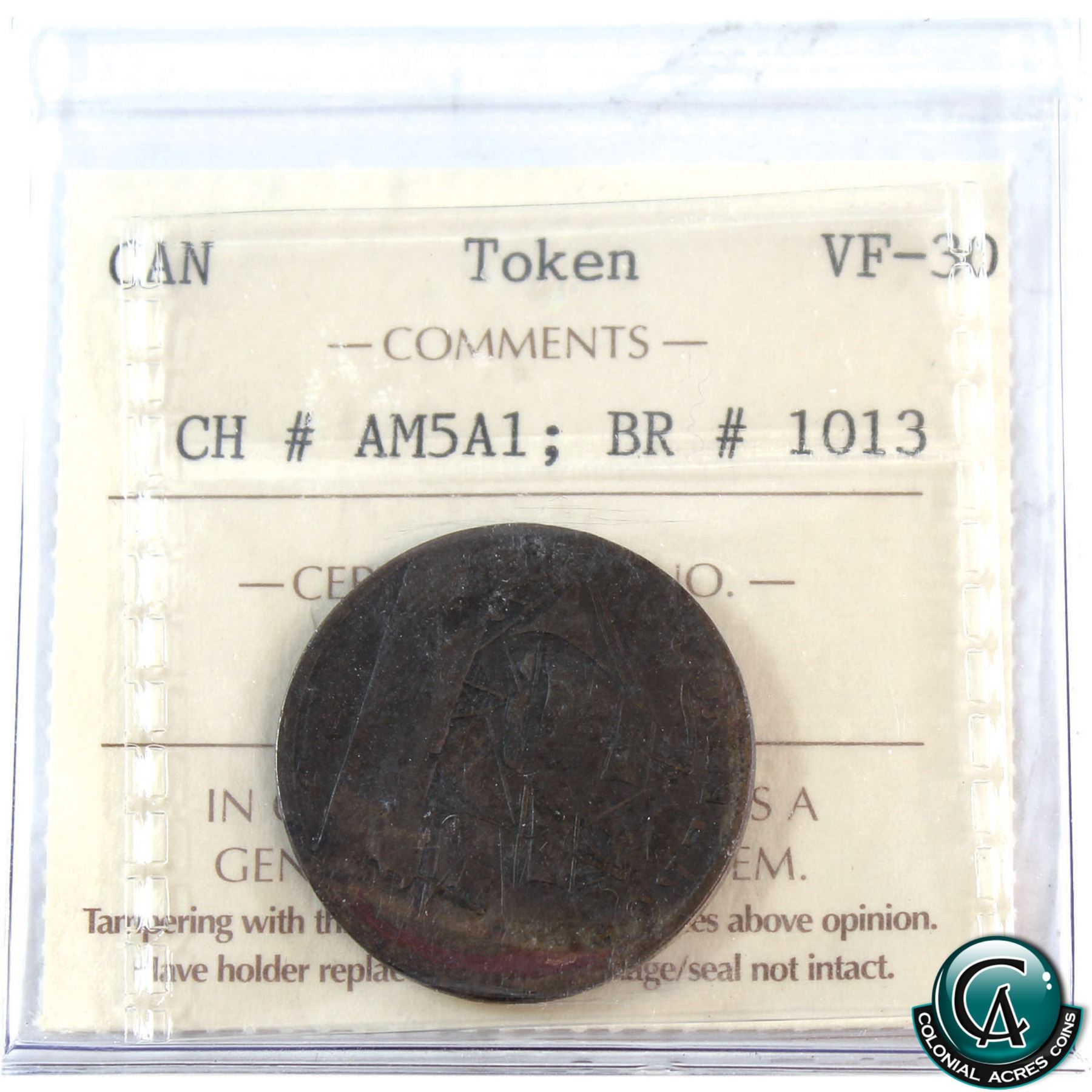 Token AM5A1, North American 1781 Breton # 1013 ICCS Certified VF-30.