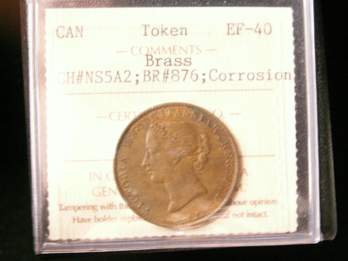 Token Br:876 Brass, CH#NS-5A2 ICCS EF40. Designated as corroded.