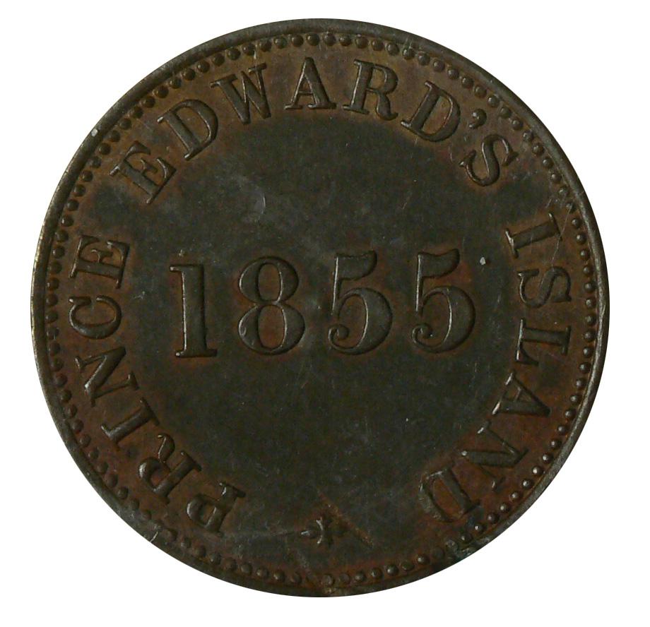 Token Breton #918, graded ICCS AU-50, Mark, Charlton #PE7A1, 1855, Prince Edward Island.