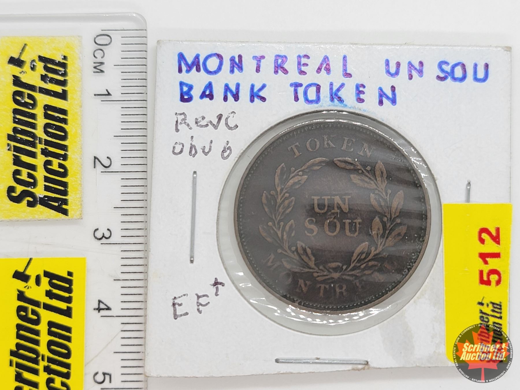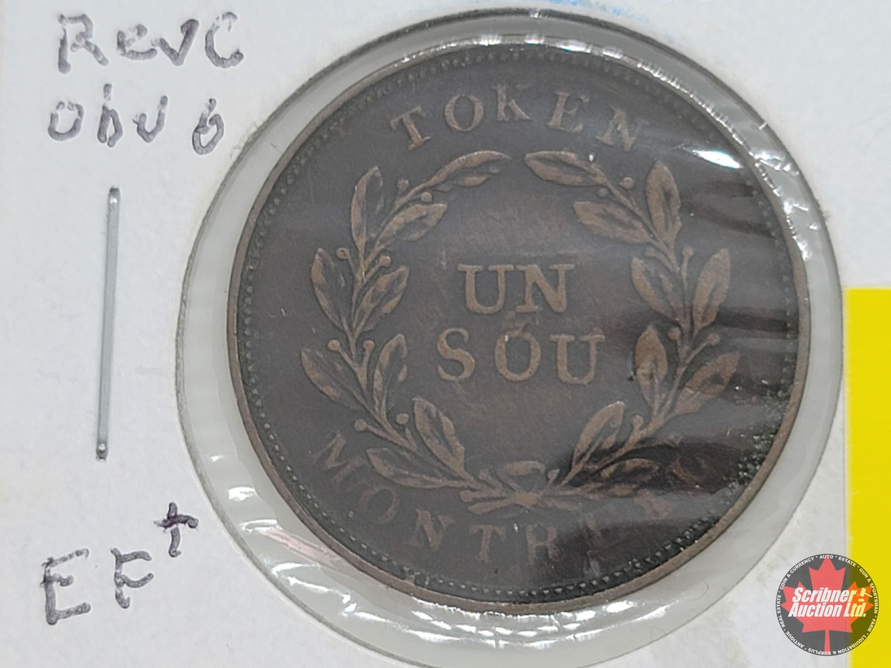 Token Canada Montreal Un Sou 1837 : Bas Canada Agriculture & Commerce (SEE PICS!)